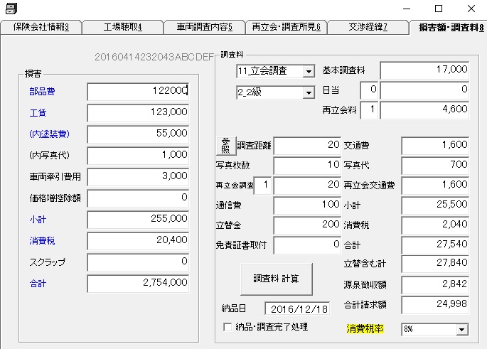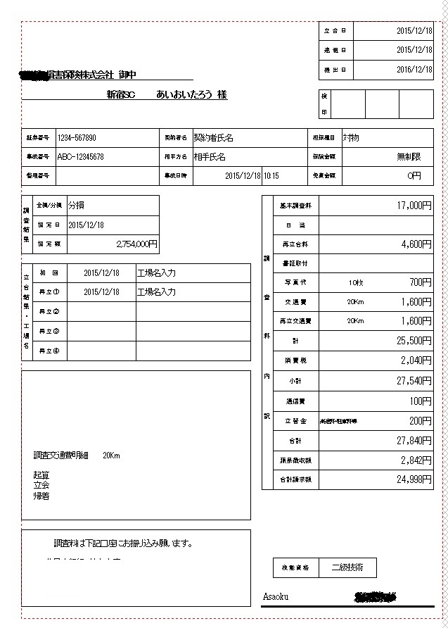 2.調査料金も自動計算され、調査報告書とともに印刷できます。